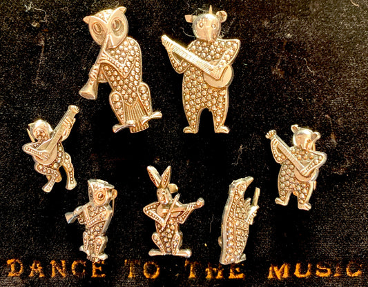 1940s Guitar Playing Frog Faux Marcasite Brooch - 2.3cm Tall