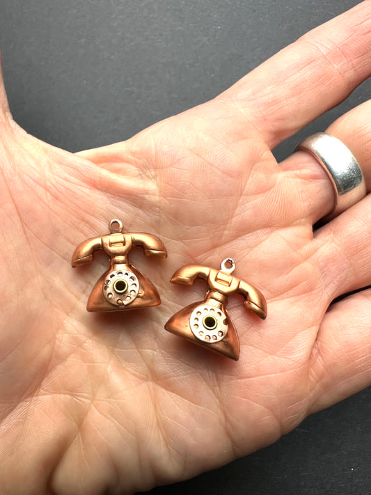 Vintage 1940s Telephone Charms with Moving Dials - 2cm wide and tall