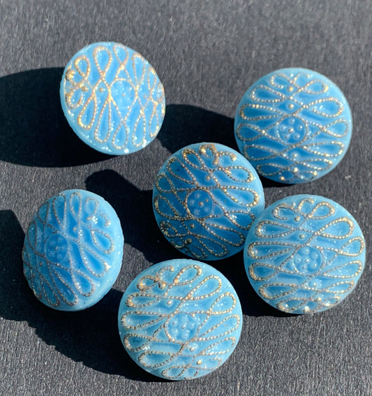 6 Vintage 1950s Cornflower Blue 1.4cm Glass Buttons