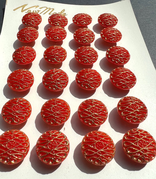 24 Vintage 1950s Theatrical Red & Gold 1.4cm "New Mode" Glass Buttons
