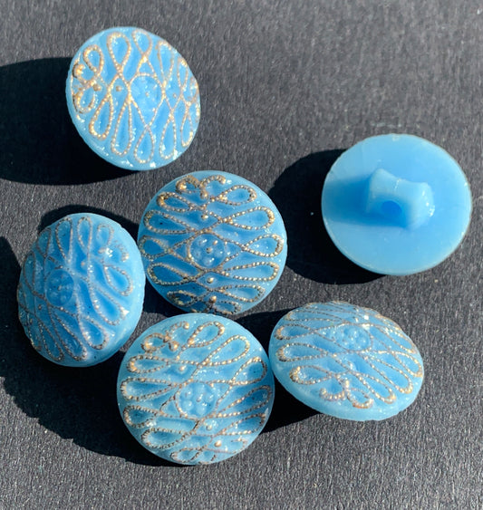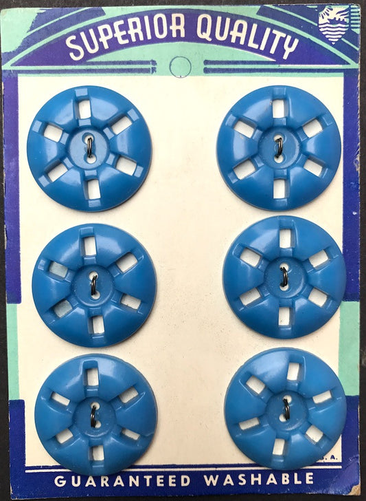 24 Vintage 1950s Cornflower Blue 1.4cm "New Mode" Glass Buttons