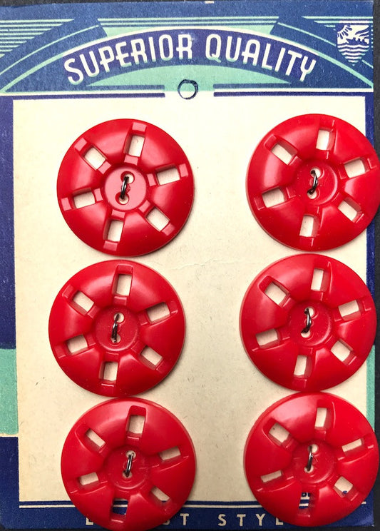 24 Striking Vintage 1950s Bright Red Buttons- 2cm or 1.7cm