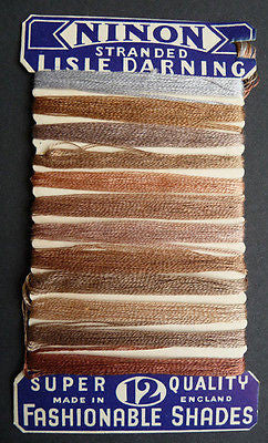 Attractive Vintage Cotton Darning 12 Shades Thread Card - Old Shop Stock