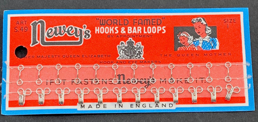 1950s BRITISH "WORLD FAMED" Hooks & Bar Loops size 1