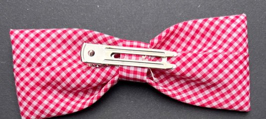 2 Mid Century Shimmery Red and White 8cm Hair Clips