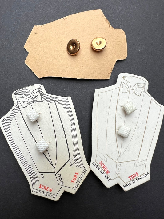 1930s/40s Glass Screw Top Dress Shirt Studs on Delightful Card
