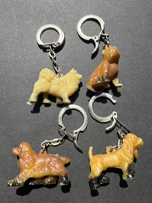 Card of 4 Vintage Dog Key Rings Made in Hong Kong
