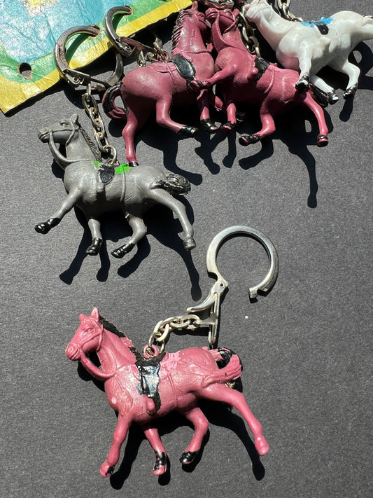 Card of 5 Vintage Horse Key rings Made in Hong Kong