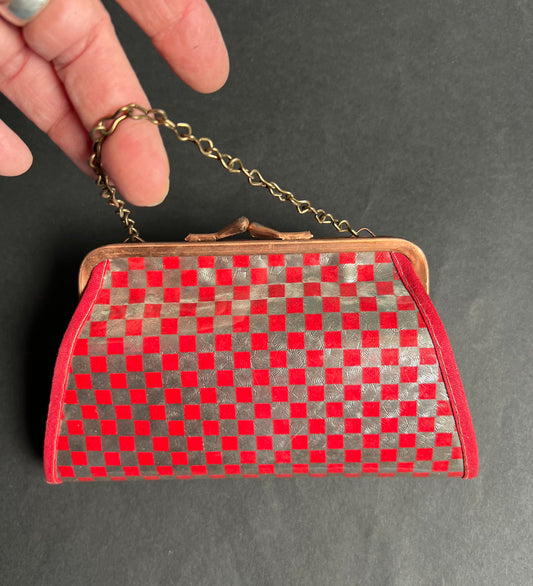 Dynamic Red and Silver Checkerboard 1940s Bag