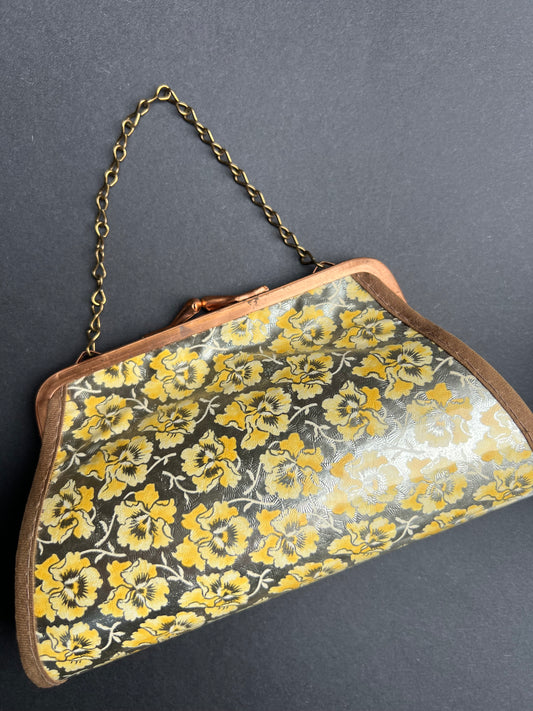 Very Pretty Silver and YellowFloral Tiny 1940s Bag / Purse