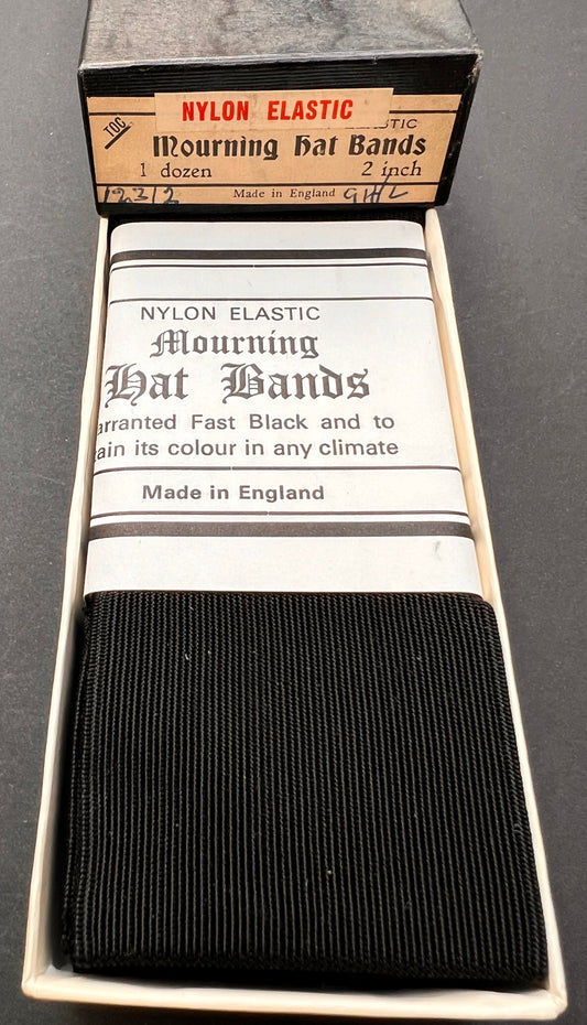 Box of a Dozen 1940s Black Mourning Hat Bands