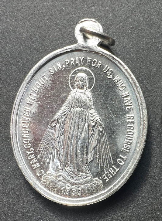 Vintage 1940s Catholic Double Sided Holy Medallion - German - 2.5cm - Aluminium