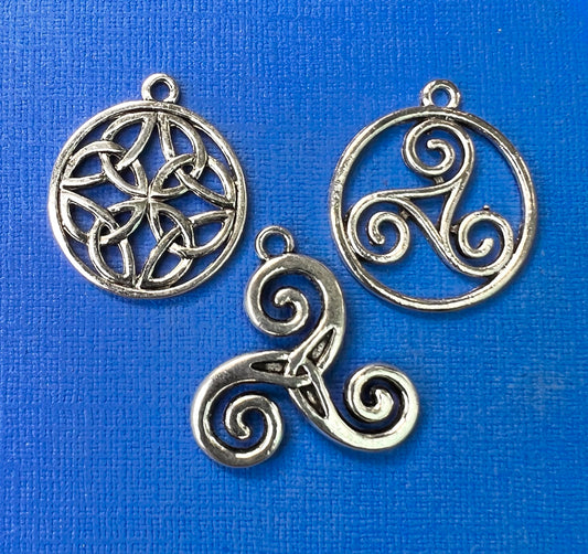 Choice of 3 Celtic Symbol 2.5cm - 3cm Charms / Pendants