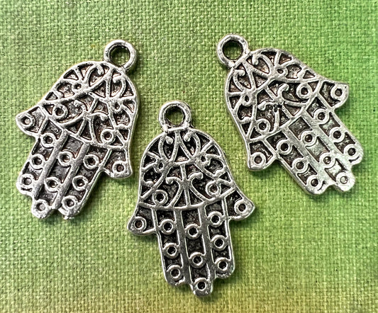 3 Hamsa Hand Charms / Pendants - 2.5cm - Silver tone or Bronze tone.