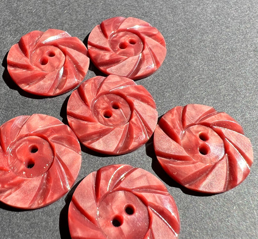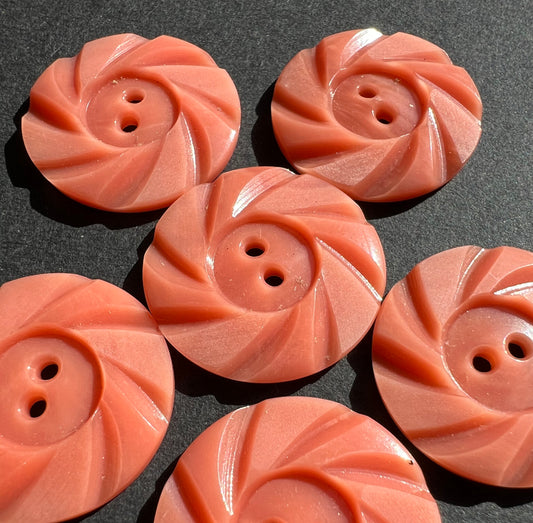 6 Swirly 2.2cm Coral Pink Vintage Buttons