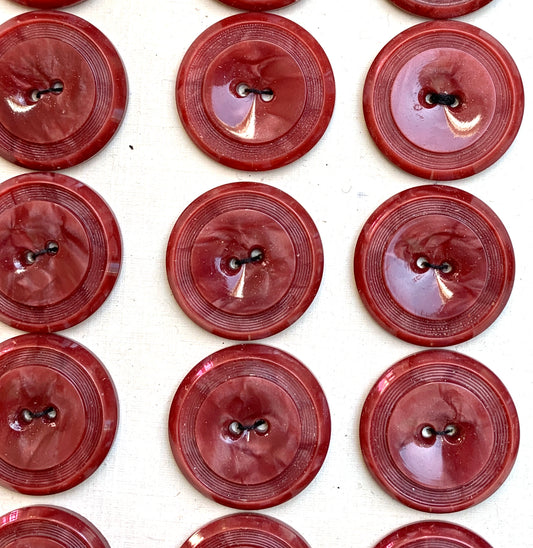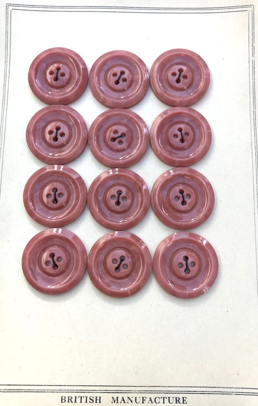 12 Vintage 1940s British 2.8cm Dark Venetian Pink Buttons