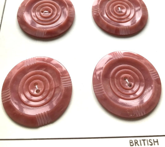 Unusual Venetian Pink Vintage 1940s Buttons - 3 sizes.