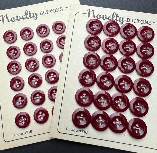 24 Vintage 1940s British 1cm or 1.3cm Shiny Maroon Buttons