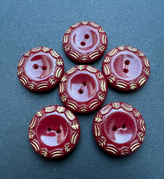 6 Glass Maroon with Gold Detail Vintage 1.8cm Buttons
