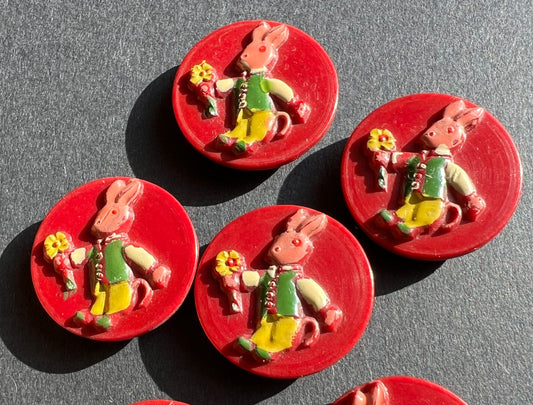 6 Hand painted Vintage Maroon Rabbit 2cm Buttons
