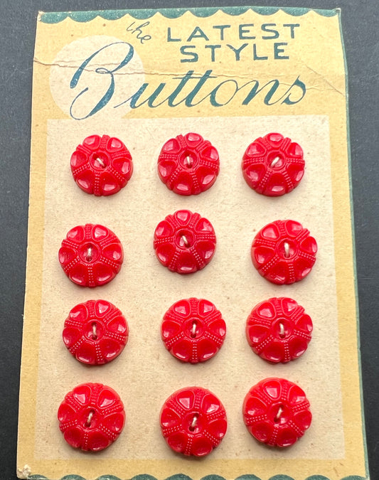 Interesting Vintage Red 1cm or 1.5cm Glass Buttons