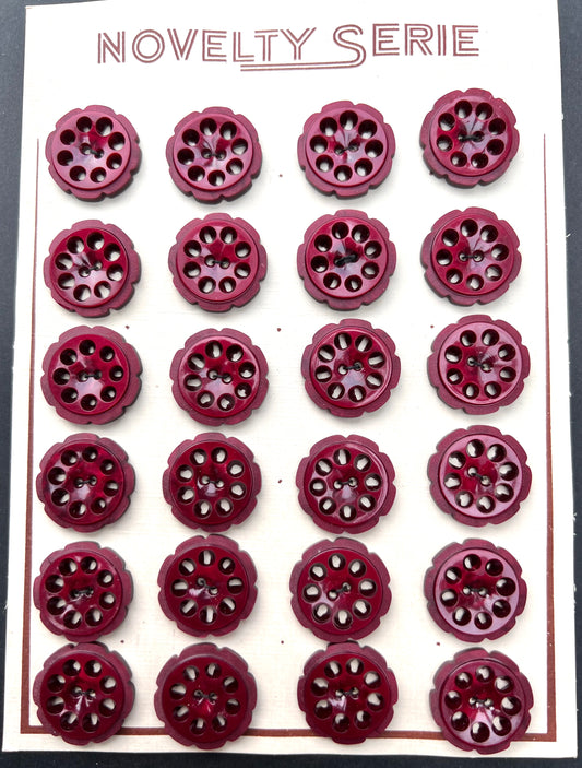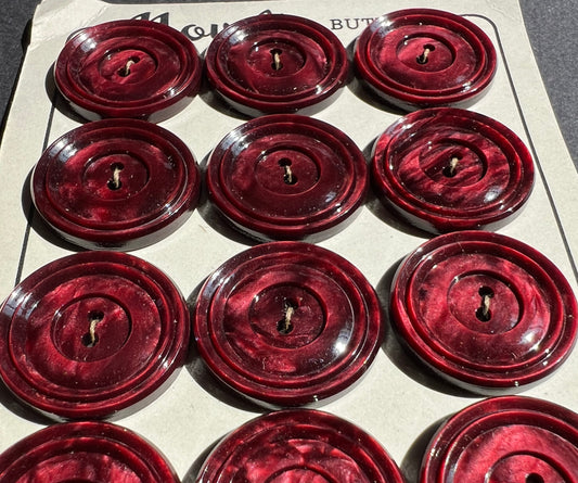 Burgundy Red 2.2cm Vintage French Buttons - 6 or 24 on Sheet.