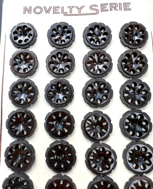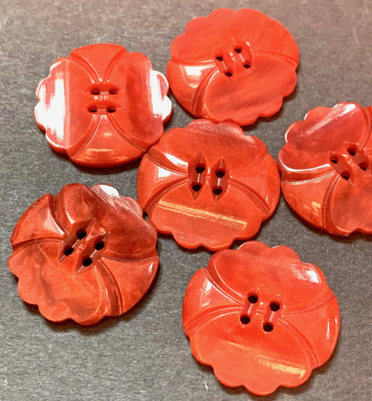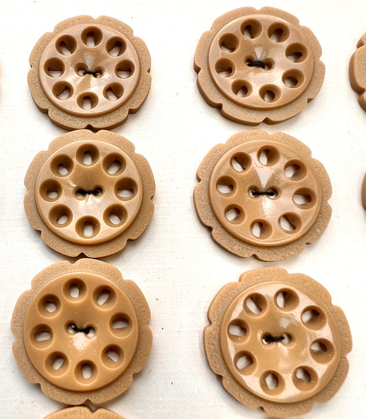 6 Toffee Caramel Moulded and Carved 1930s Casein 2.2cm or 1.6cm Buttons