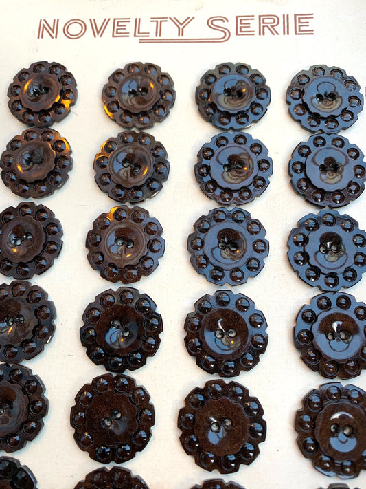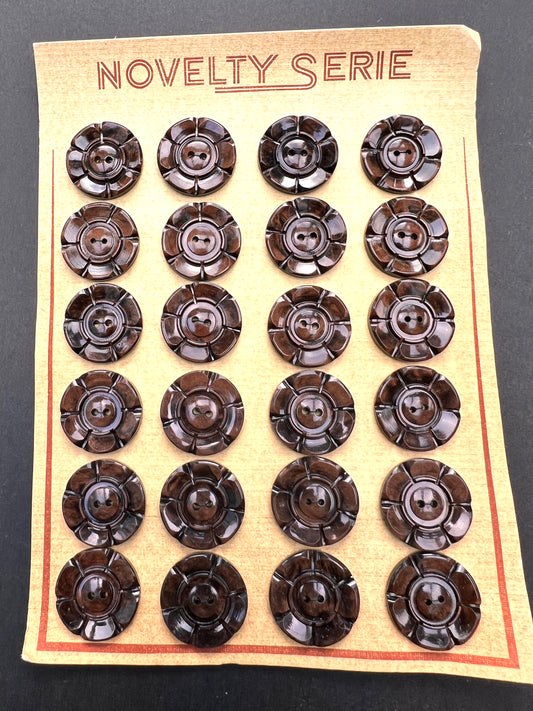 Intense Walnut Brown 1940s 2.2cm + 1.6cm Buttons 6 loose or 24 on Sheet