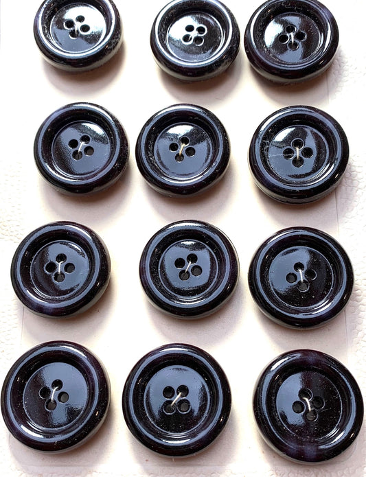12 Smooth and Chunky 2.7cm Vintage Very Dark Brown Vintage Buttons