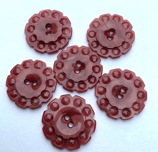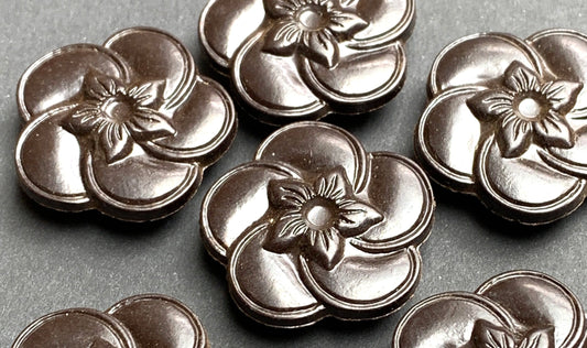 6 x 1940s Made in England 2.2cm Rich Brown Bakelite Flower Buttons