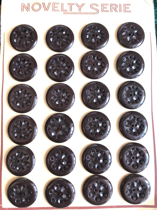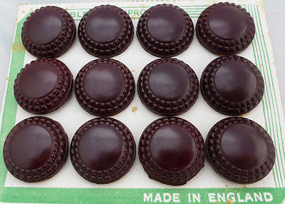 12 Dark Brown English 1940s Bakelite Buttons- 12 on a card - 2.2cm or 1.7cm