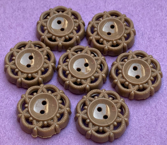 6 Mushroom Brown 1.7cm or 2cm Space Age Vintage Buttons