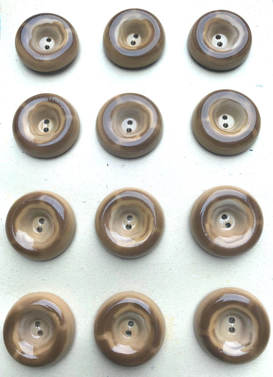 12 Vintage Big 2.7cm Brown Doughnut Buttons