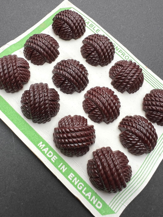 12 Bakelite Brown Buttons- 2.2 or 18cm - on Original Display - Card Made in England