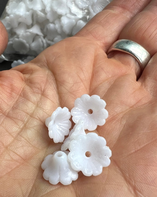 100 Pretty White Vintage Flower Buttons / Beads- 8mm tall, 12mm wide