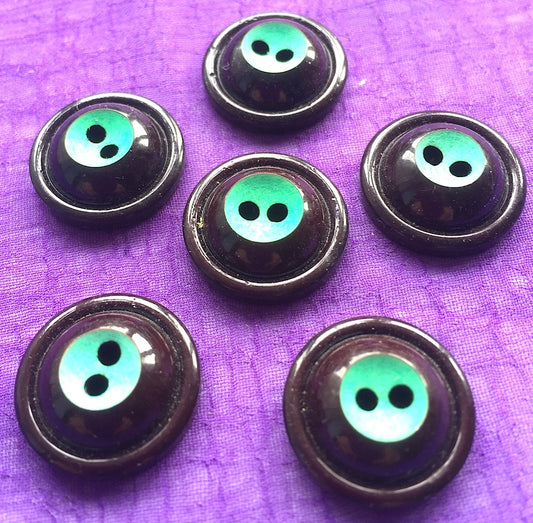 6 Sculptural Vintage Dome Shaped Italian Buttons - Blue, Black, Brown, Green, Red