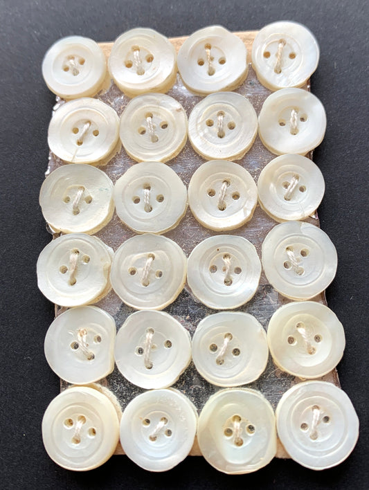 24 Wonderfully Irregular 1cm Vintage Mother of Pearl Buttons on Card