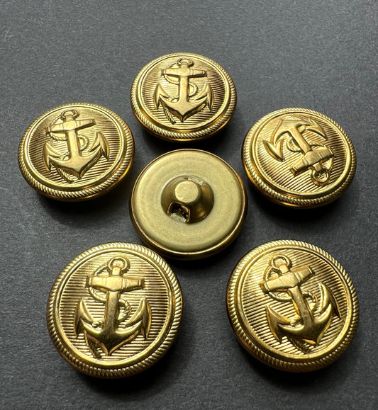 1/2 Gross (72) Vintage Metal 2cm Gold Anchor Buttons