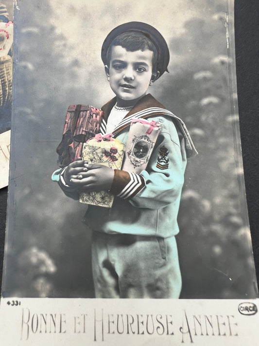 2 Little French Sailor Suited Boys with Armfuls of Presents..
