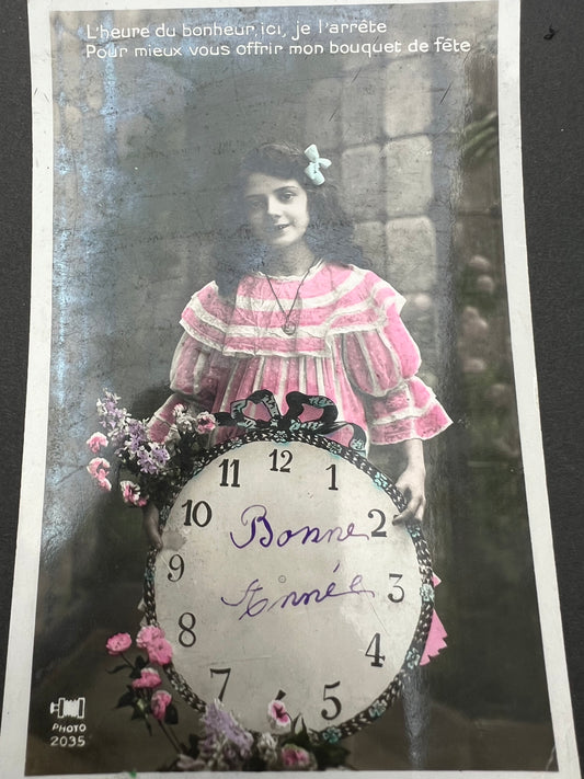 2 Little french Girls Offering Happy New Year Greetings on 1900s French Postcards