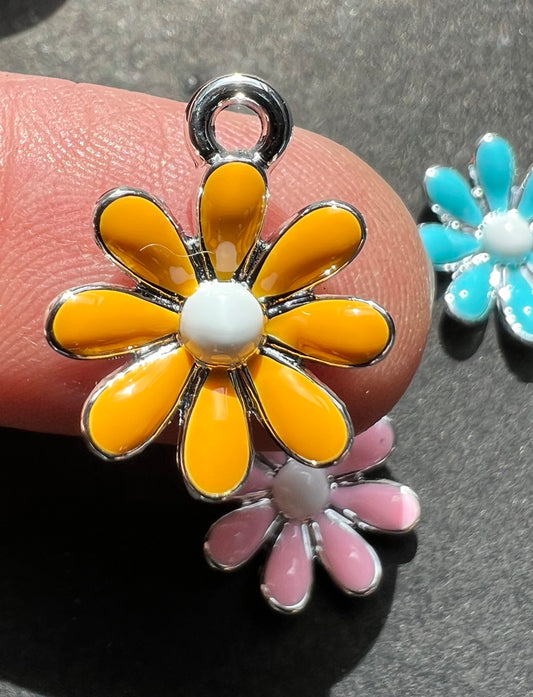 Enamel Flower Charms 1.5cm wide Charm / Pendant