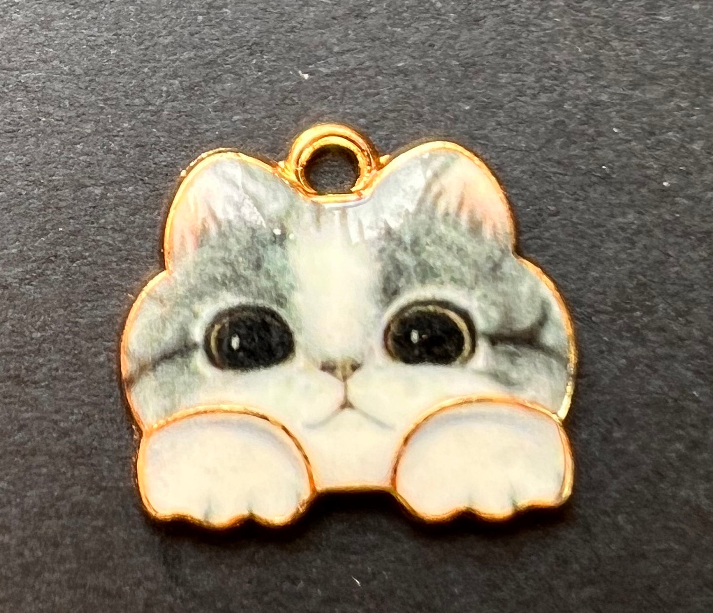 Sweet fluffy, wide eyed kitten enamel charm.