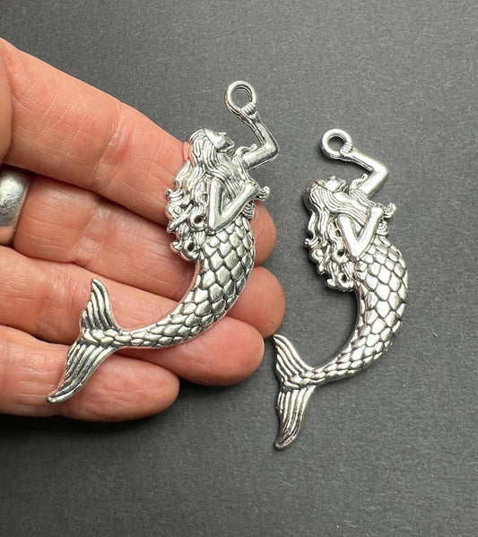 Striking 8cm Silver Tone Mermaid Pendant