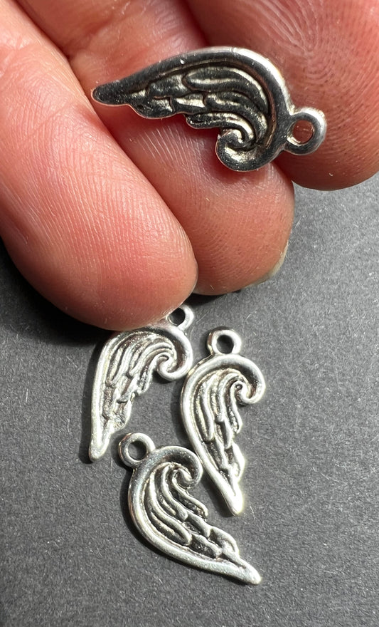 6 Little 1.5cm Wing / Feather Charms - Gold, Silver or Bronze Tone.