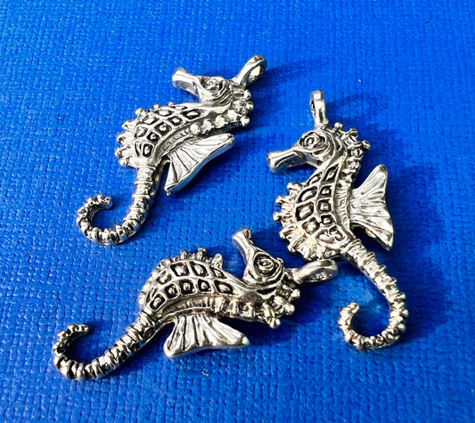3 Jaunty Seahorse Charms / Pendants - 3cm long