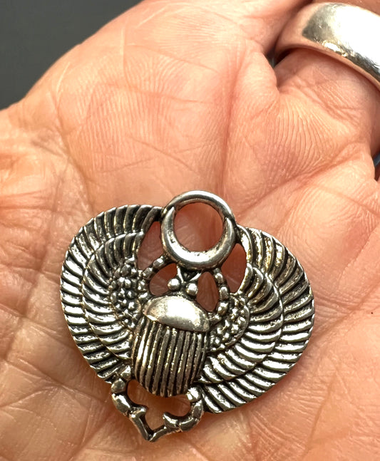 2.8cm wide Egyptian Winged Scarab Beetle Charm / Pendant