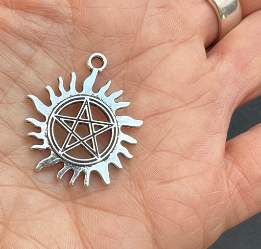 Pentacle and Crescent Moons 3cm wide Charm / Pendant