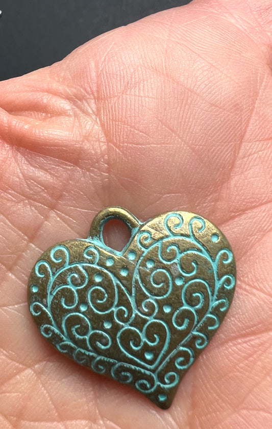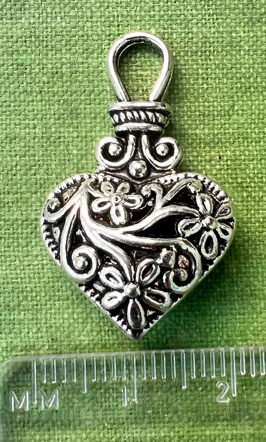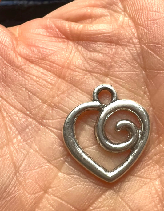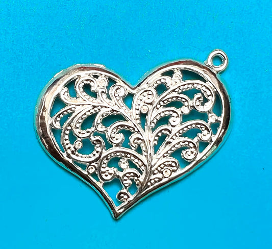 Big 3.8cm Silver Tone Curlicue Heart Pendant