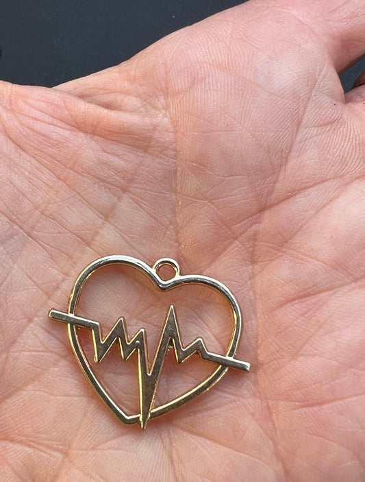 Heart with Heartbeat 3cm Gold Tone Heart Charm / Pendant