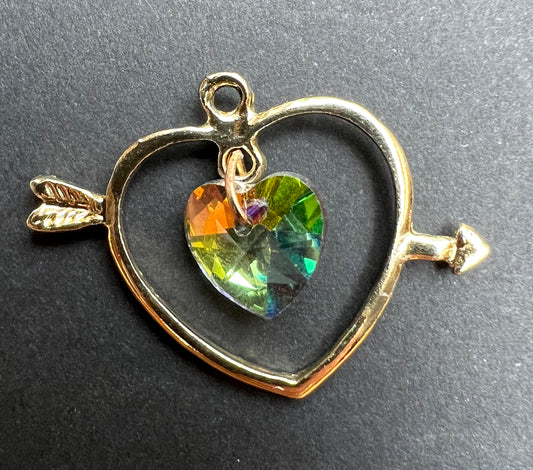 Heart with Arrow and Aurora Crystal Heart 3cm Pendant